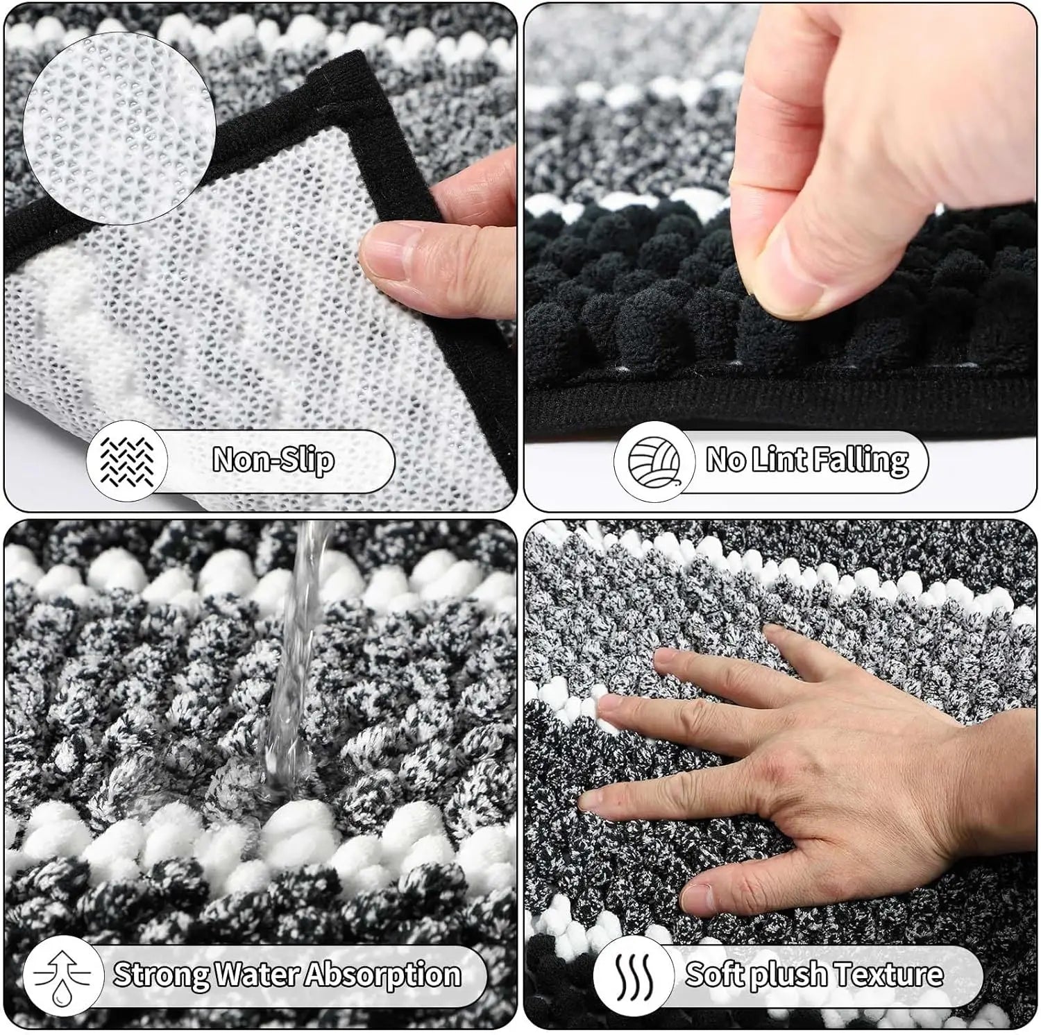 - 【34 PIECE BATHROOM ACCESSORIES SET】:XLHOMO 34 pieces bathroom accessories set complete, including 3*Drill Free 17oz Shower Soap Dispenser Wall Mounted(Comes with three hooks),1*shower curtain,19.6"x31.5" mat, 15.7"x23.6" mat,1*Toothbrush Holder, 1*Toothbrush Cup, 1*Soap Dish, 1*Toilet Brush, 1*Trash Can, 2*Qtip,6 Waterproof Tags. The uniform style makes the bathroom more beautiful, which is ideal for the modern home.