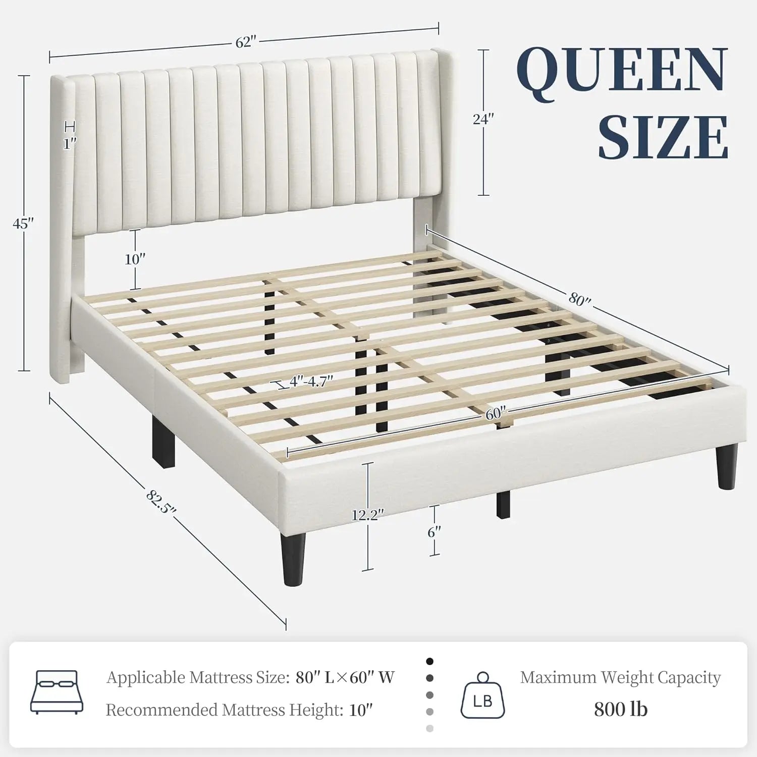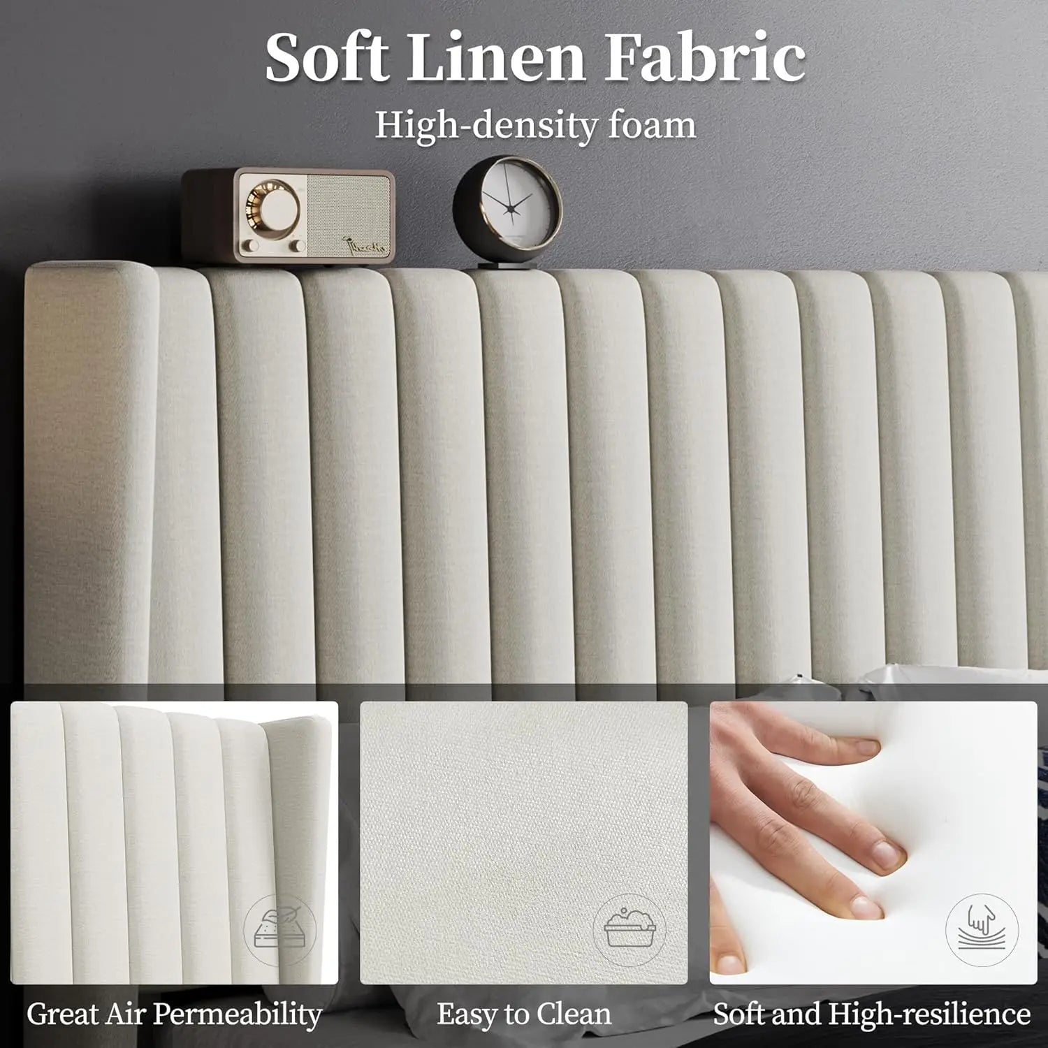 - Classic Design: Classic simple geometric wing side style, channel headboard, and skin-friendly linen fabric, the queen bed frame is a stunning decor for your bedroom furniture, seriously upgrading your room's aesthetic