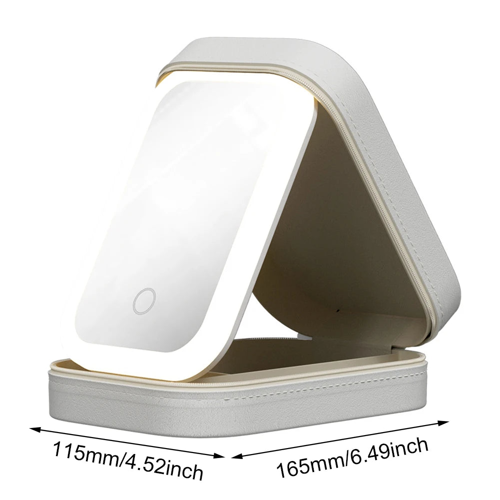 3. Adjustable Lighting for Makeup: The fashion portable travel makeup bag is equipped with a mirror featuring LED lights and a touch light switch, allowing you to adjust the lighting according to your needs. With three light settings - cool, warm, and natural light - you can ensure your makeup looks perfect in any environment.