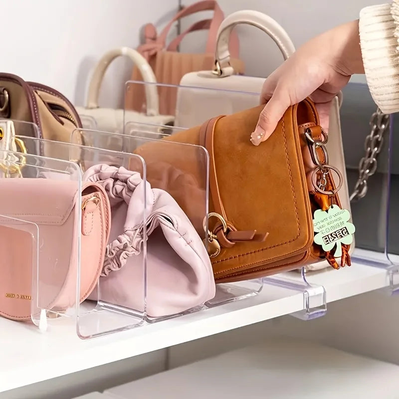 Versatile 4-Section Transparent Acrylic Storage Rack - Ideal for Handbags, Purses, Documents & Books - Easy to Install Wardrobe Organizer with Practical Hooks, Waterproof, Contemporary Design, Under-Bed Storage